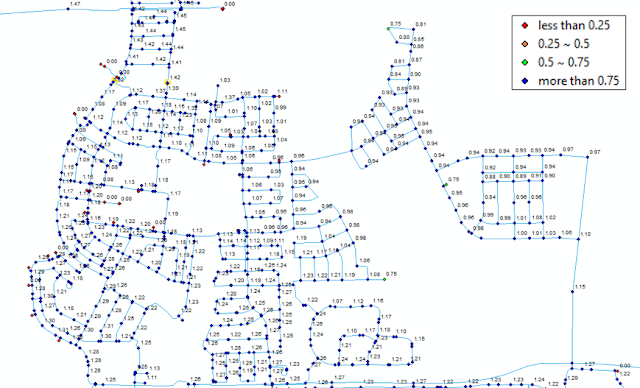 | Flushing to maintaining minimum total chlorine concentration of 0.75 mg/L, Minimum total chlorine concentration (mg/L) at the end of the simulation period